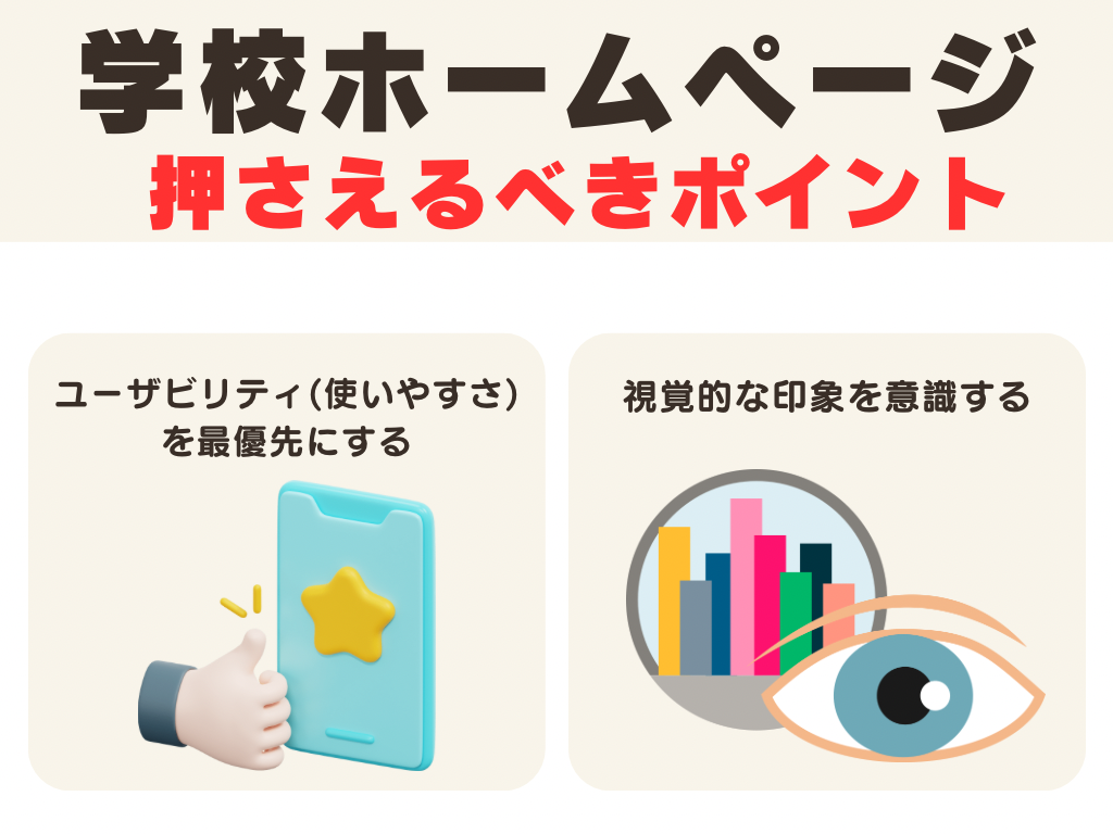 学校のホームページは、多くの人がアクセスするため、誰でも直感的に情報を探せるデザインにすることが求められます。例えば、以下のような工夫を取り入れると使いやすさが向上します。