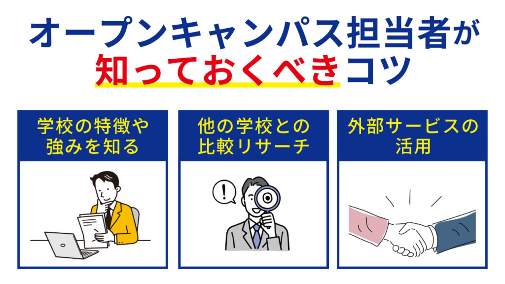 続いて、オープンキャンパス担当者として知っておくべきコツをお伝えします。