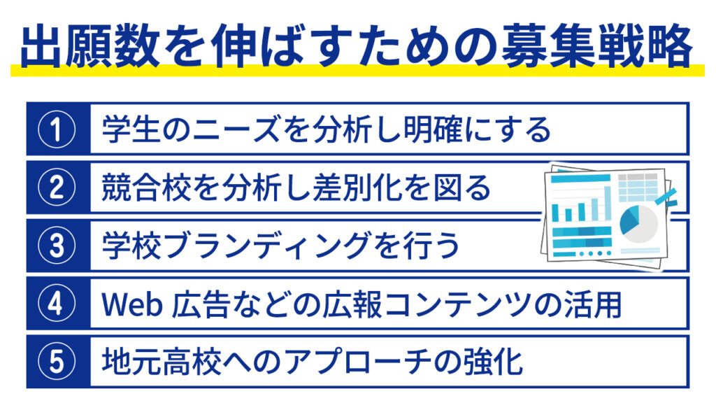 本記事では、出願数を伸ばし、入学者を増やす方法について解説します。