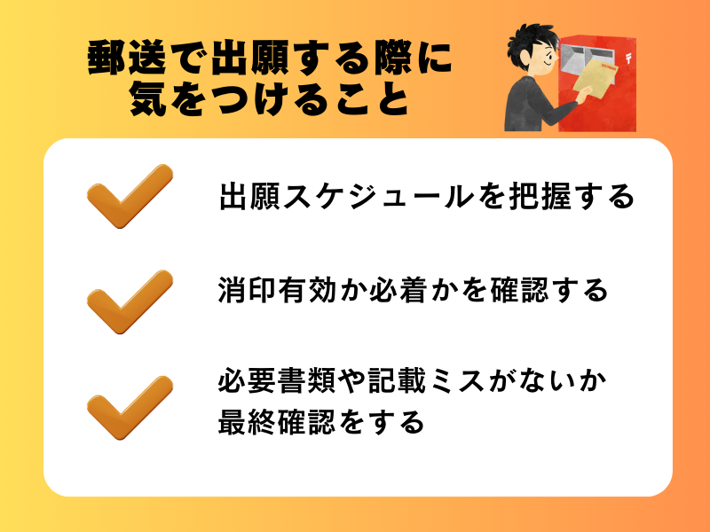 郵送で出願する際に気をつけるべきことは下記の4点です。