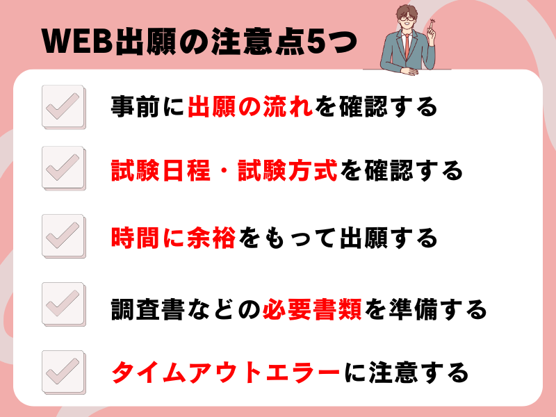 WEB出願を利用するにあたって、5つの注意点を紹介します。